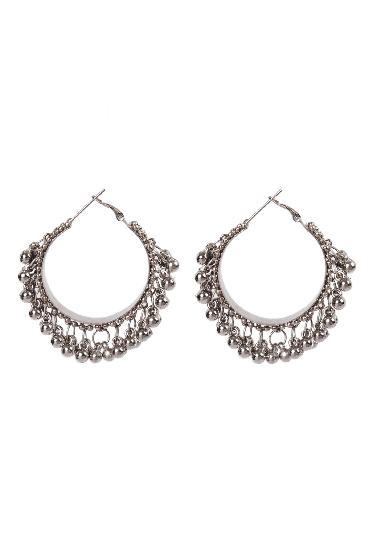 German Silver Partywear Silver Ghunghru Bali Hoop Earring