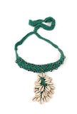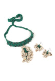 Green Thread & German Silver Tribal Seashell Choker & Earrings Set