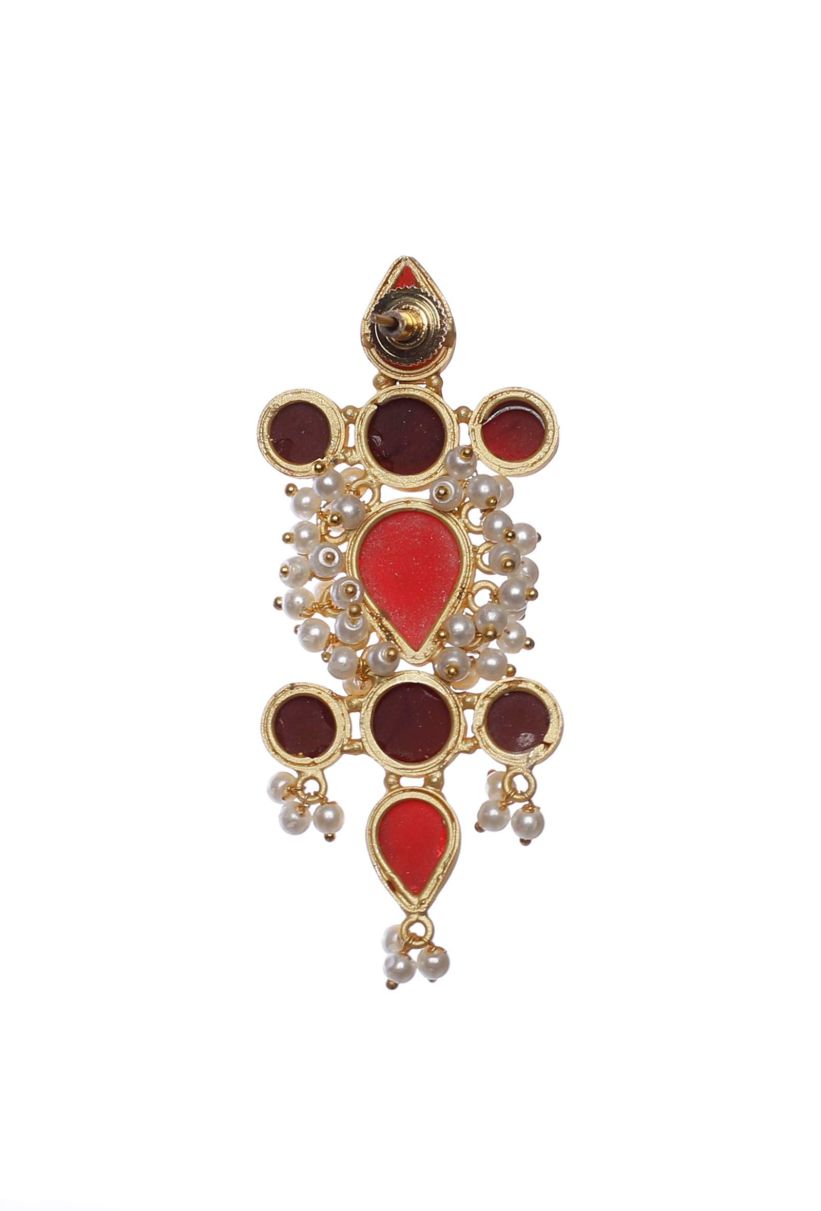 Scarlet Red Gold Stone Pearl Earrings