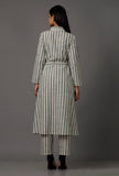 Set of 2: Green and White Stripes Pure Woven Cotton Kurta and Pants