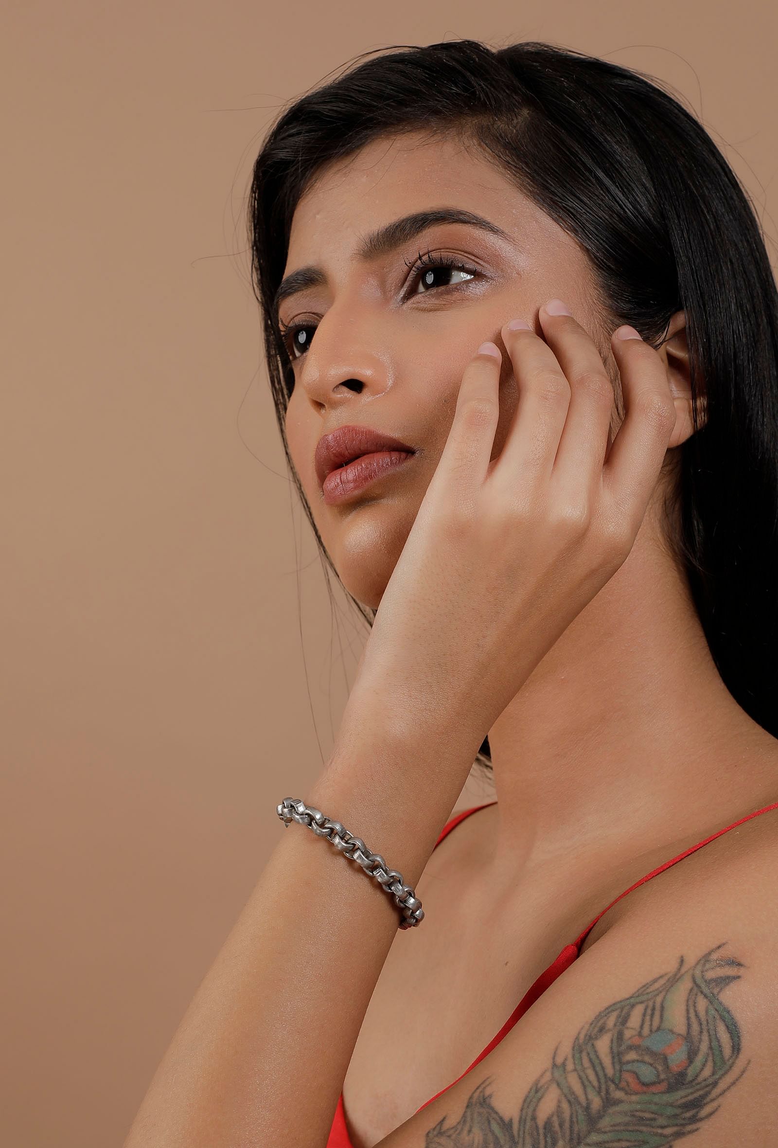 A beautiful accessory crafted with brass chains, inspired by Gothic chunky jewellery. This unique bracelet has been given an oxidized finish for a high fashion look.Pair this up with your boho apparels and even ethnic to leave a style statement behind.