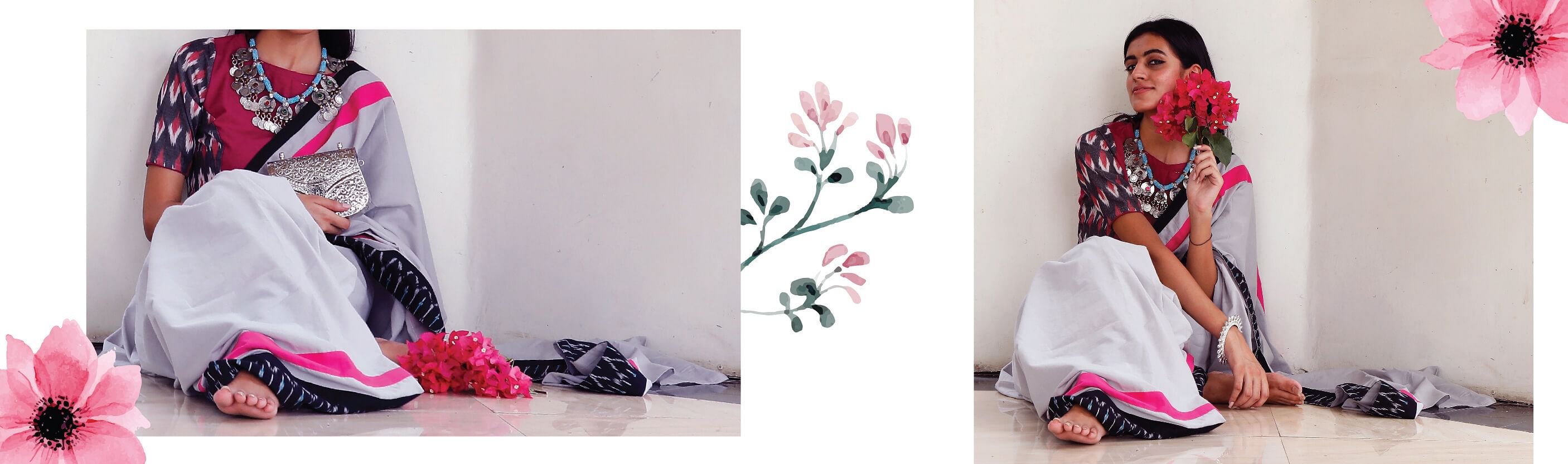 These designer chanderi cotton sarees are beautifully handcrafted so they don’t need much of styling. You can easily look amazing with a nice pair of jhumkas (Earrings) and a tribal designed necklace which you can find on Tjori.
